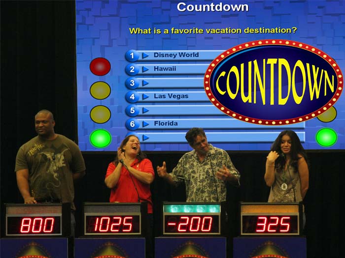 The Game Show Source offers a wide range of customizable team building game shows. Our collection includes popular television show-inspired games as well as a few of our own creations, such as the Ultimate Countdown. Our game shows are great for corporate events, social parties, fundraising events, and much more.